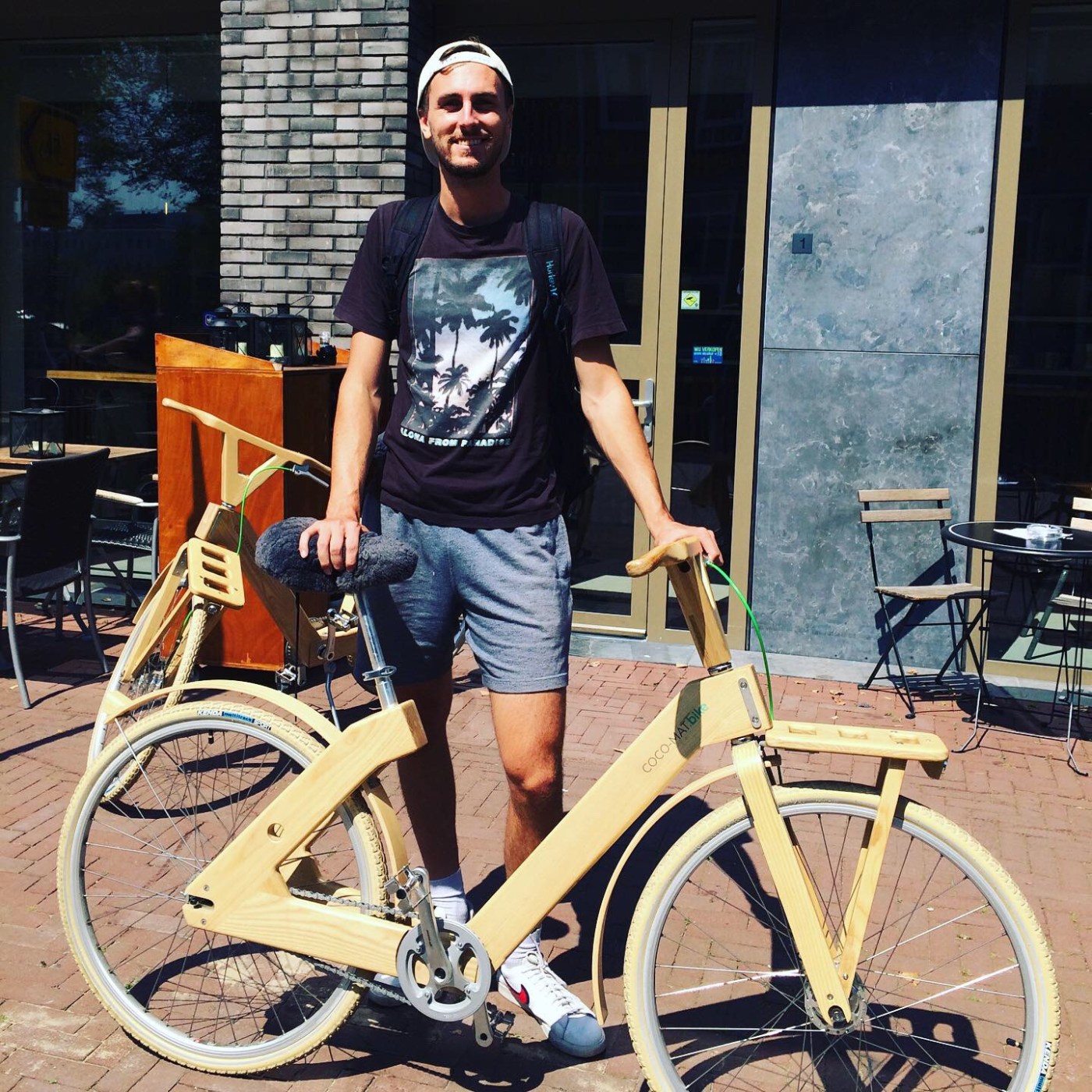 I meet Dylan, a tall, bearded man whose English is more understandable than the chaps from England. He gives me a cup of tea and then soon we are riding wooden bicycles around the city. And that’s not a typo. These are legit bikes made from wood. The ergonomics of such a machine elude me, but the kid-like excitement prevails.